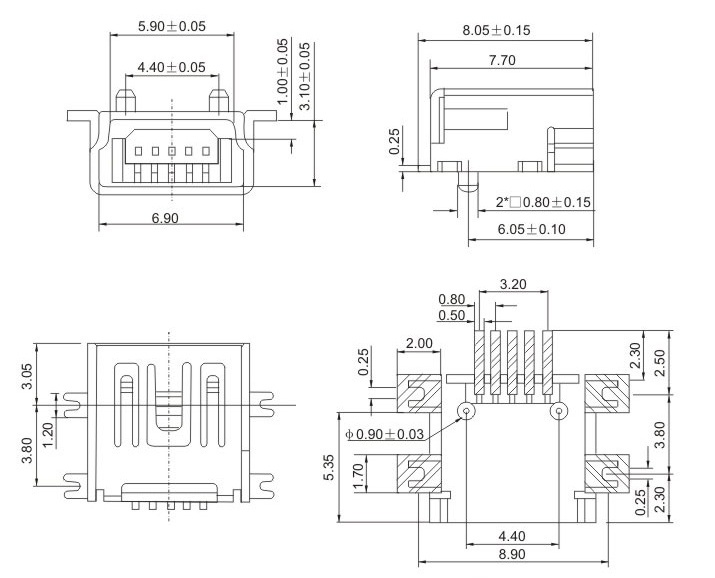 MINI USB 5P母座B Type 短体SMT前插后贴式