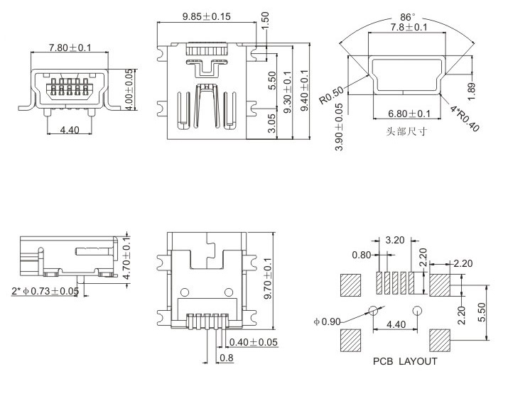 MINI USB 5P母座B Type SMT式